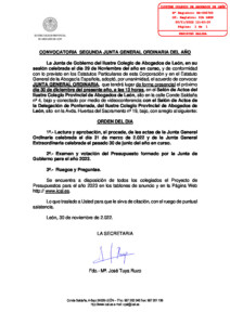 2. CIRCULAR M-116/2022. Convocatoria de la segunda Junta General Ordinaria de 2022. León y Ponferrada, 30 de diciembre de 2022.